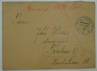 dopis s razítkem 29.X.38, ručně psaná poznámka "CENZURA"