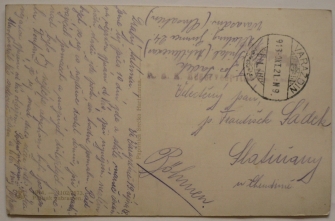 česky psaná pohlednice do Čech, podací razítko VARAŽDIN 918.OKT.21; zajímavé
