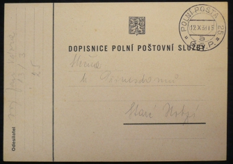 dopisnice polní pošty s razítkem 12.X.38; pochází z rozsáhlé sbírky