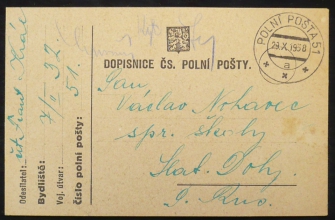 dopisnice polní pošty s razítkem 29.X.38; pochází z rozsáhlé sbírky