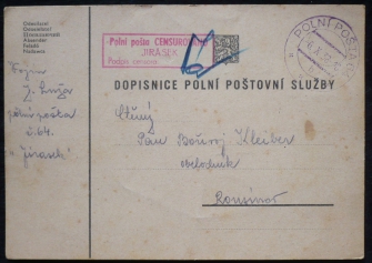 dopisnice polní pošty s fialovým razítkem 6.X.38, rámečkové cenzurní razítko; lehké skvrny