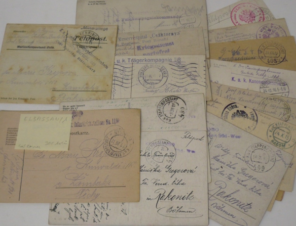 1915 Polní pošta, sestava 16 celistvostí, velmi hezké