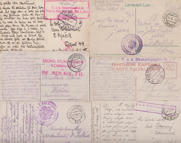 1916 Polní pošta, sestava 6 pohlednic