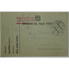 lístek polní pošty s razítkem 6.XI.38, razítko Třídírny polní pošty/ CENZUROVÁNO; hezké