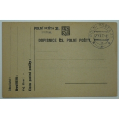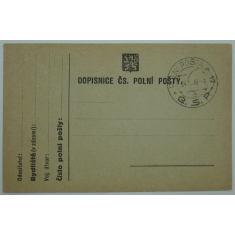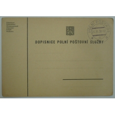 lístek polní pošty s razítkem 17.XI.38, razítko POLNÍ POŠTA 21/ zrušena