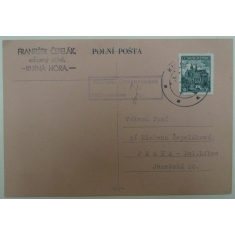 dopisnice polní pošty se známkou 50h, razítko KUTNÁ HORA 5.X.38, rámečkové cenzurní razítko