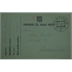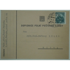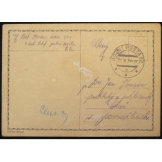 dopisnice polní pošty s velkým státním znakem, razítkem 6.XI.38; pochází z rozsáhlé sbírky