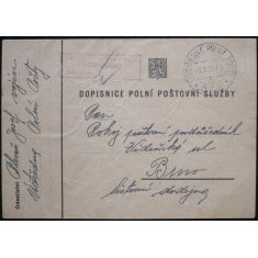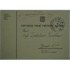 1938 ÚSTŘEDNA POLNÍ POŠTY a