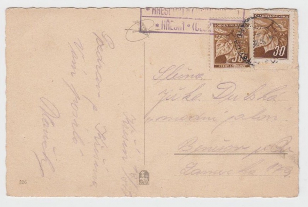 1945 Poštovna KRESCHIN / KŘEŠÍN (ČECHTICE) - dvojjazyčný název po osvobození