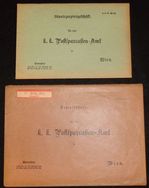 sestava 2 nepoužitých obálek s přítiskem