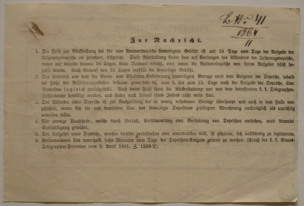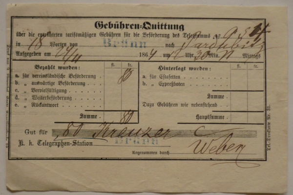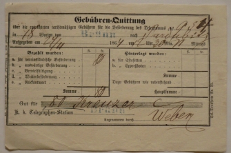 Potvrzení o zaplacení telegramu, Brno