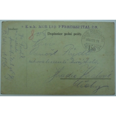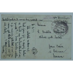 červené útvarové razítko na pohlednici do Čech, HFPA 630/II; hezké