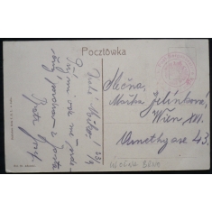 pohlednice z Jasła (dnes JV Polsko) do Vídně, červené razítko K.u.K. POST-BERGUNGSSTELLE BRÜNN; vzácné