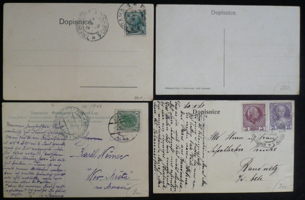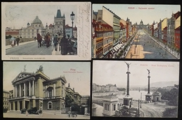sestava 4 pohlednic, z toho 1x dlouhá adresa; Q1-2