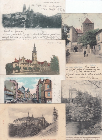 Praha - dlouhé adresy, sestava 6 pohlednic