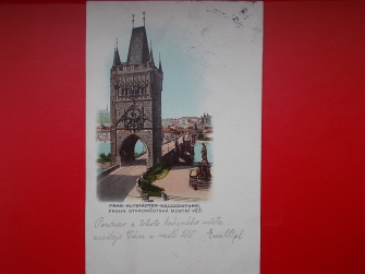 Praha Malá strana Hradčany Karlův most věž litografie dopisnice dlouhá adresa