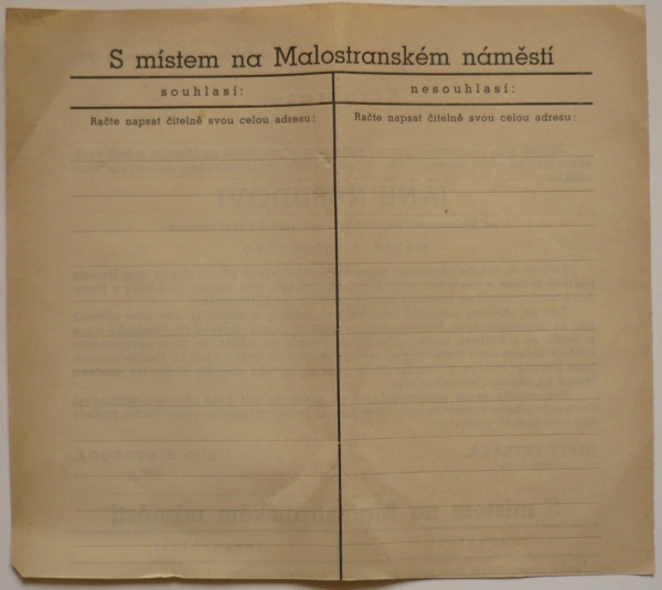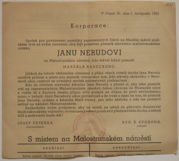 1935 Praha, petiční arch za Nerudův pomník