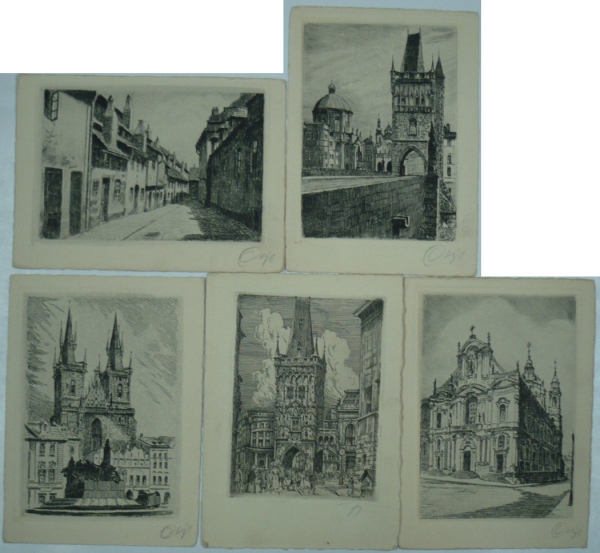 Praha, sestava 5 uměleckých pohlednic