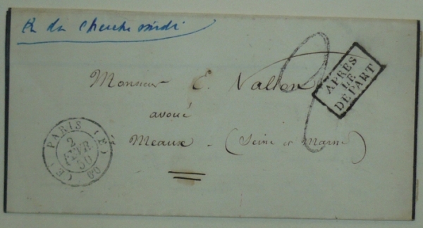 maloformátový skládaný dopis do Meaux, razítko PARIS 2.II.50, rámečkové razítko "Après le départ" (po odeslání); hezké