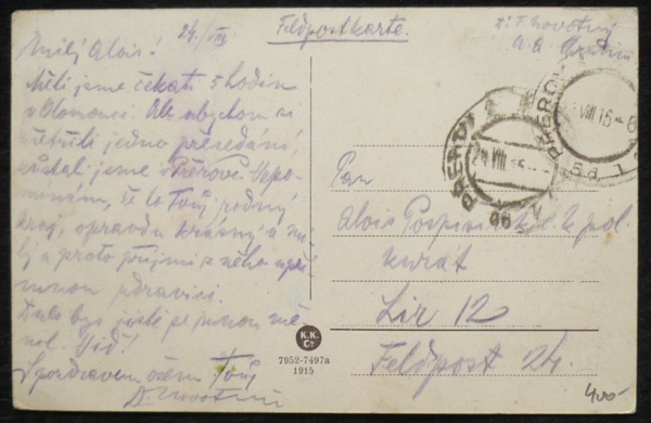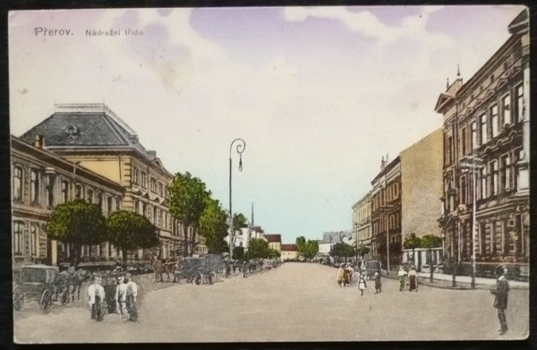 Nádražní ulice, lidé, povozy, prošlá, polní pošta, Q2