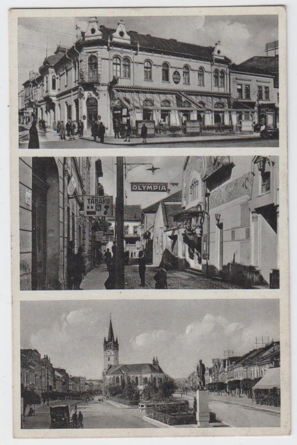 Hotel Berger, secesní budova, Masarykova socha na náměstí; Q1