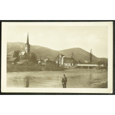 Snina, fotopohlednice, pohled ke kostelu, prošlá, Q3 - poškozený obraz
