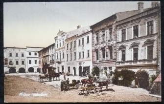 náměstí, povozy, lidé, hotel Hlubík, nepoužitá, Q2 - vzadu stopy po přilepení