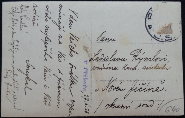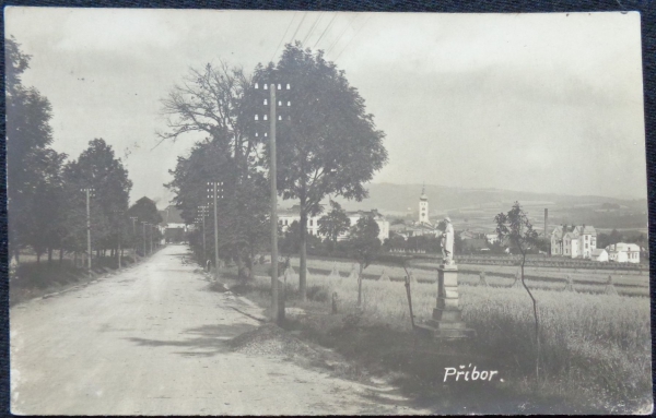 fotopohlednice, pohled ze silnice, prošlá, stržená známka, Q2