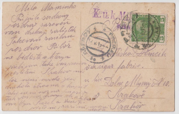 koláž "čtyřlístek", litografie, prošlá, dlouhá adresa, Q2