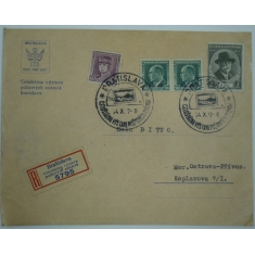 R dopis do Ostravy, BRATISLAVA 24.X.37 (příležitostné razítko), bohatá frankatura, mj. známky B.I.T. 1937
