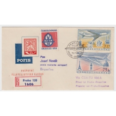 obálka se vstupenkou na filatelistickou výstavu Družba ČSSR-NDR, razítko kurýrní služby, rámečkové razítko PŘEVZAL PIONÝR se jménem Balušík; bezvadné