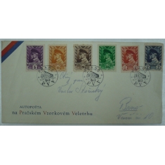 obálka s přítiskem Pražské vzorkové veletrhy s kompletní sérií známek Moskevského vydání, PRAHA AUTOPOŠTA 16.IX.1946; hledané