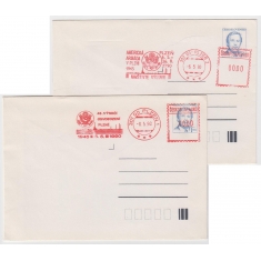 sestava 2 obálek s předtištěnou známkou Havel s různými příležitostnými razítky: Americká armáda v Plzni a 45. výročí osvobození Plzně