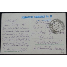 9okénková, vzadu řádkové razítko PERMANENTER KRANKENZUG No. 22, prošlá, polní pošta, Q1