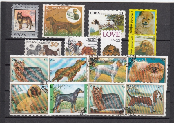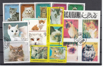 Psi a kočky, sestava 30 známek a 1 aršíku na 2 destičkách