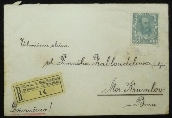 r nálepka a razítko BÍLOVICE U UH. HRADIŠTĚ; lehké skvrny