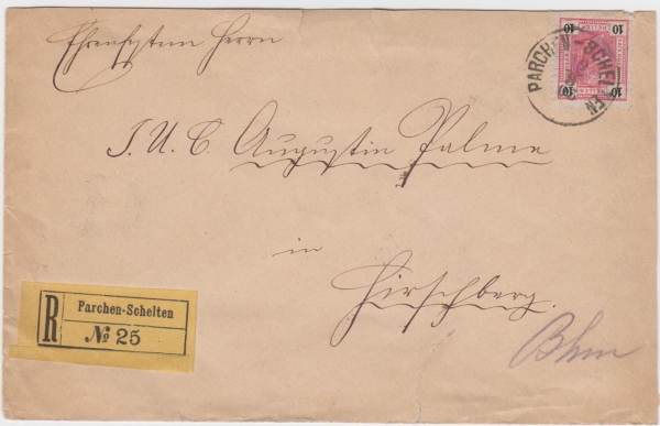 PARCHEN-SCHELTEN [Prácheň-Šelty, okr. Česká Lípa] 18/8/05, bohatá tříbarevná frankatura