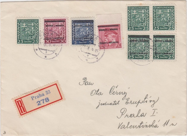 československá známka POFIS 251, Státní znak 25h zelená, přetisková emise, PRAHA 26.VII.39
