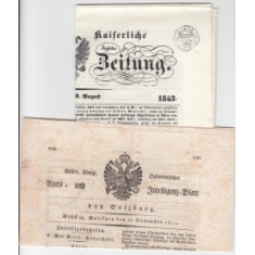 1843 Celé noviny WIENER ZEITUNG s otiskem novinového kolku W/ ZEITUNG/ 1 K