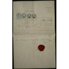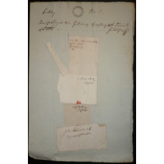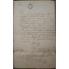 1803 Judaika, česky psaná listina s přilepenými 4 lístky psanými hebrejsky
