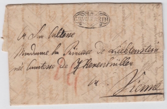 šlechtická korespondence, skládaný dopis adresovaný princezně de Liechtenstein