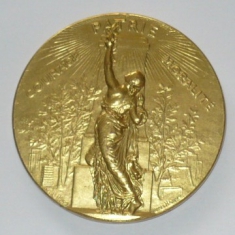 udělena USGF (Unie gymnastických spolků ve Francii) založenou 1873, autoři medaile Paul Dubois a Henri Chapu, průměr 58 mm; vzácné