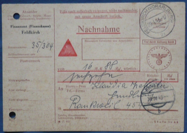 RAKOUSKO, Vorarlbersko, poštovní poukázka