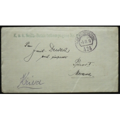 adresováno na vojenské velitelství Hohenau, podáno ve Vídni, expediční a příchozí poštovní razítko, úřední poznámky a nálepka