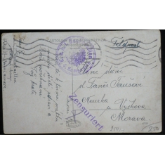 K.u.K. I. Seebattalion/ 4. Kompagnie, na pohlednici na Moravu, řádkové razítko ZENSURIERT; odřené rohy