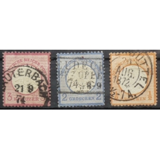 1872 Německo, MICHEL 14, 19, 20 + výstřižek z novinové pásky S2, Orlice, hezká razítka