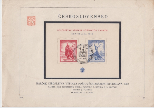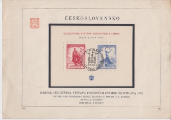 1952 Razítkovaný aršík POFIS A691/692, Výstava Bratislava