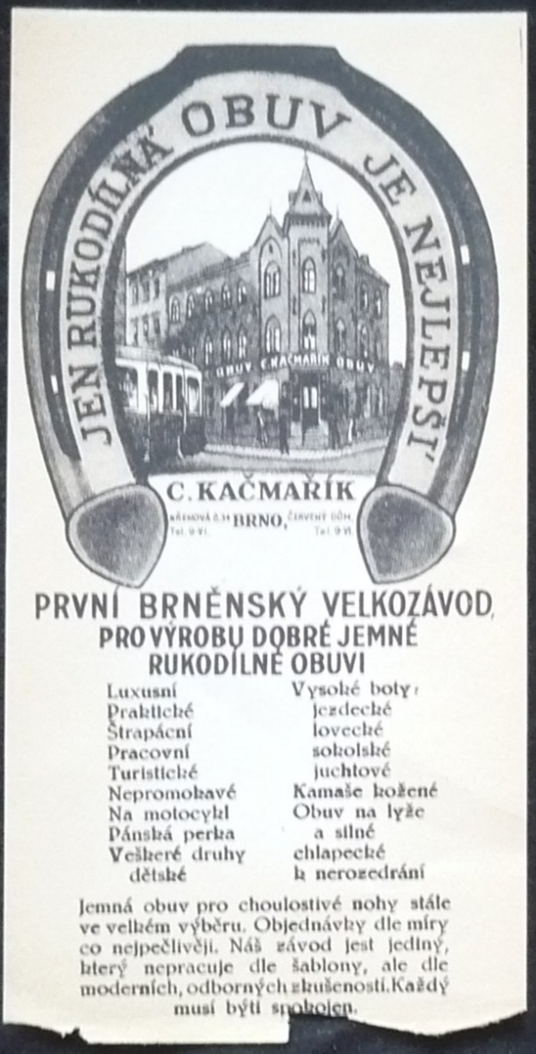 KAČMAŘÍK C., První brněnský velkozávod pro výrobu obuvi, 8x15cm