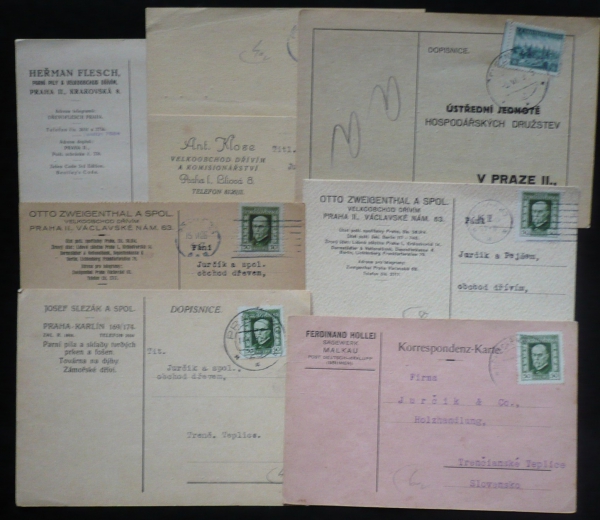 sestava 7 kusů korespondenčních lístků s reklamními přítisky, mj. FERDINAND HOLLEI, MALKAU; standardní kvlalita