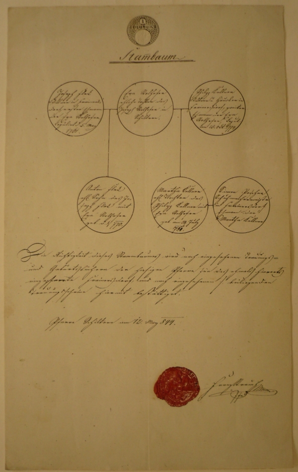 1844 Rodokmen s vtištěným kolkem 1G